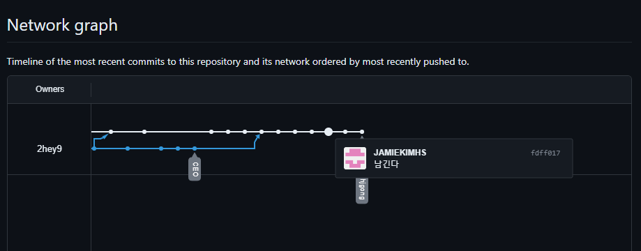 커밋 브랜치를 각각 다른 이름으로 하여 추후 형상관리시 편하게 설정해놓았다.