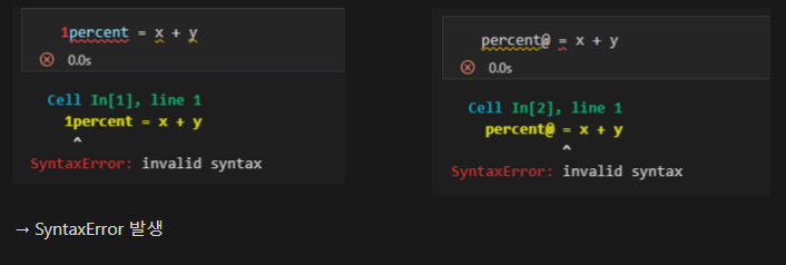 변수명은 숫자로 시작하면 안되고, 특수문자가