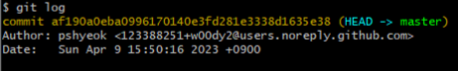 $ git log를 실행하면 만든 사람, 만든시간 그리고 커밋 메세지가 함께 나타난다.