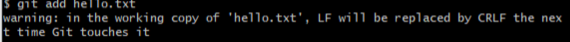 warning: in the working copy of 'hello.txt', LF will be replaced by CRLF the next time Git touches it