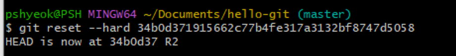특정 커밋으로 되돌릴때는 명령 다음에 커밋 해시를 사용한다.
