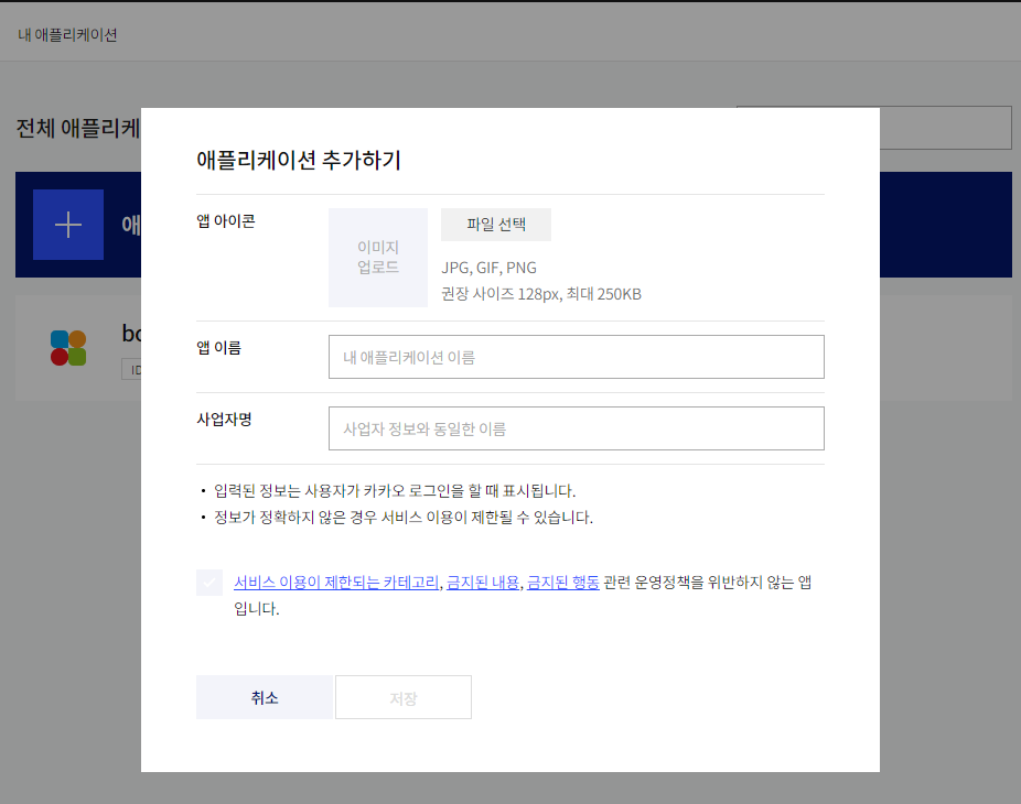 애플리케이션 이름, 사업자명, 아이콘등을 먼저 받으며 내 애플리케이션 → 제품설정 → 카카오로그인 → 동의항목에서 제공받을 항목을 선택할 수가 있다.